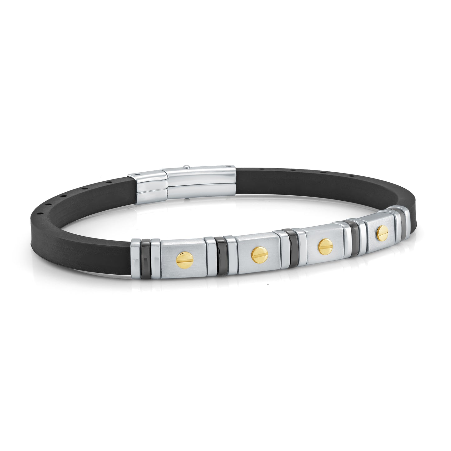 18K Gold Accents on Black Steel Bracelet