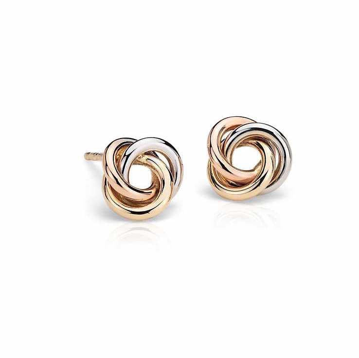 Tri Gold Love Knot Stud Earrings