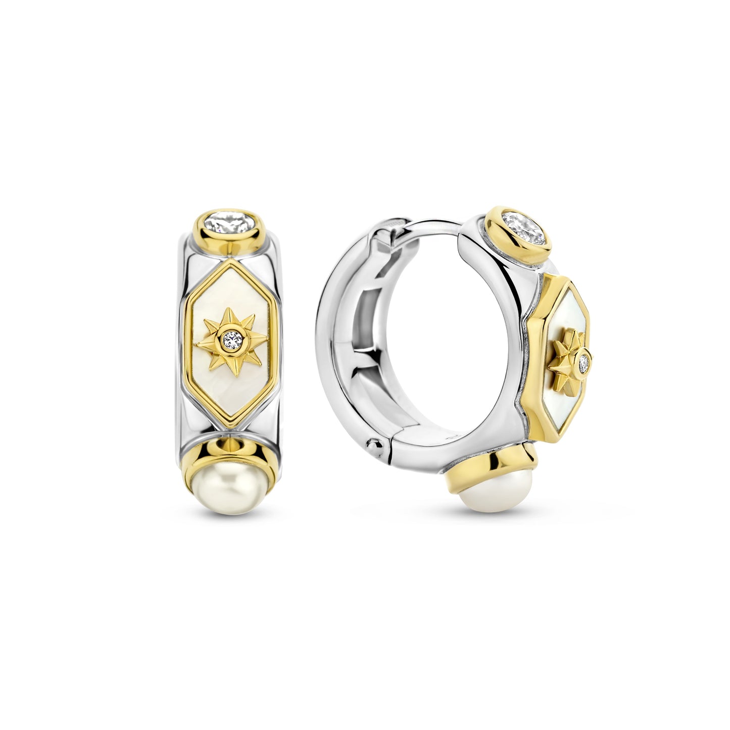 Add Celestial Mother Pearl Huggie Earrings to the cart