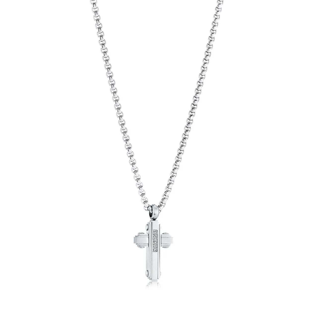 Zirconia Steel Cross 18 inch Chain