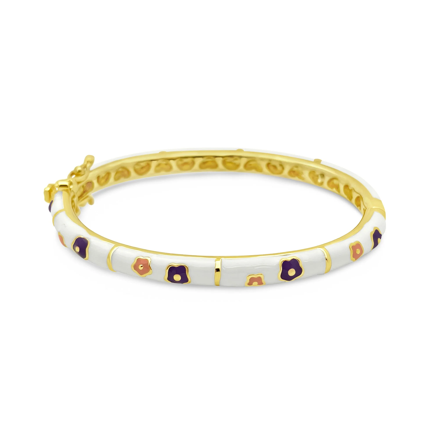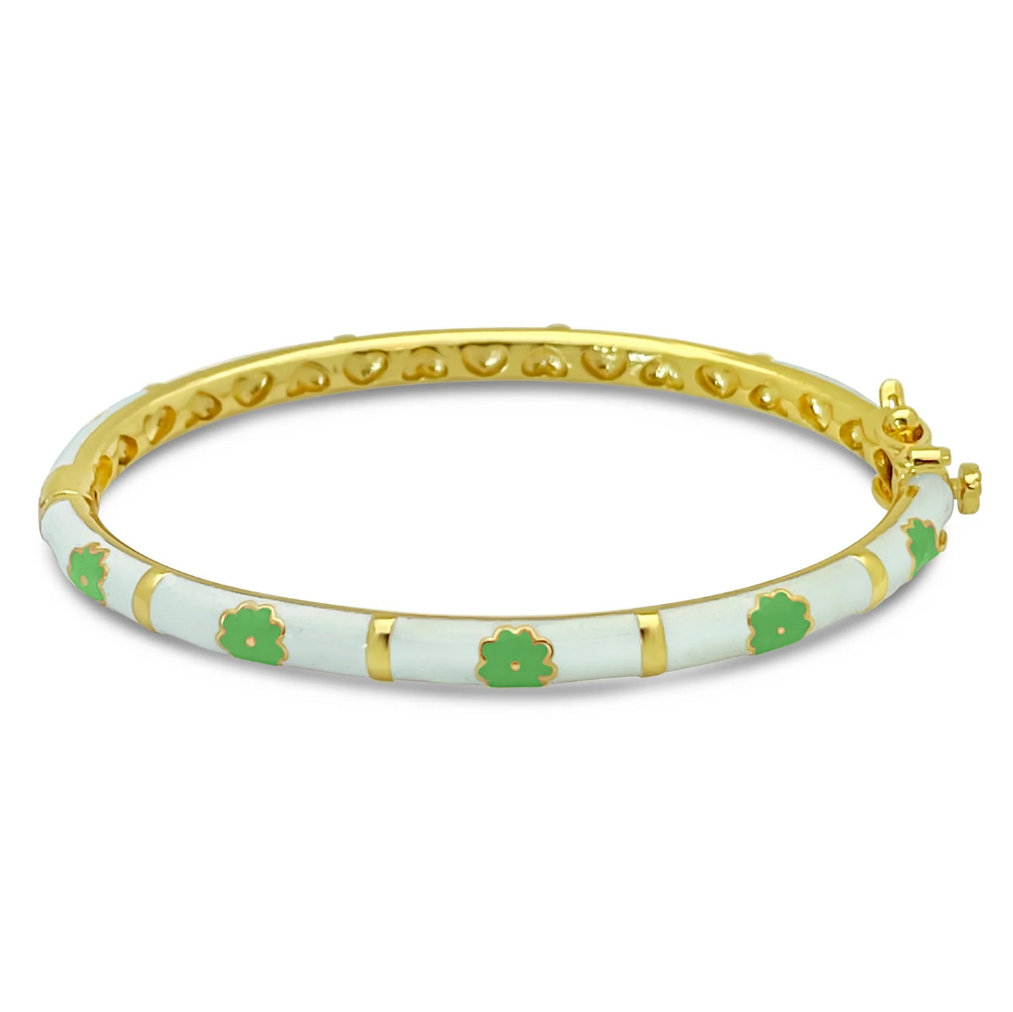 Add White, Green, Peach Flowers Kids Bangle Bracelet to the cart
