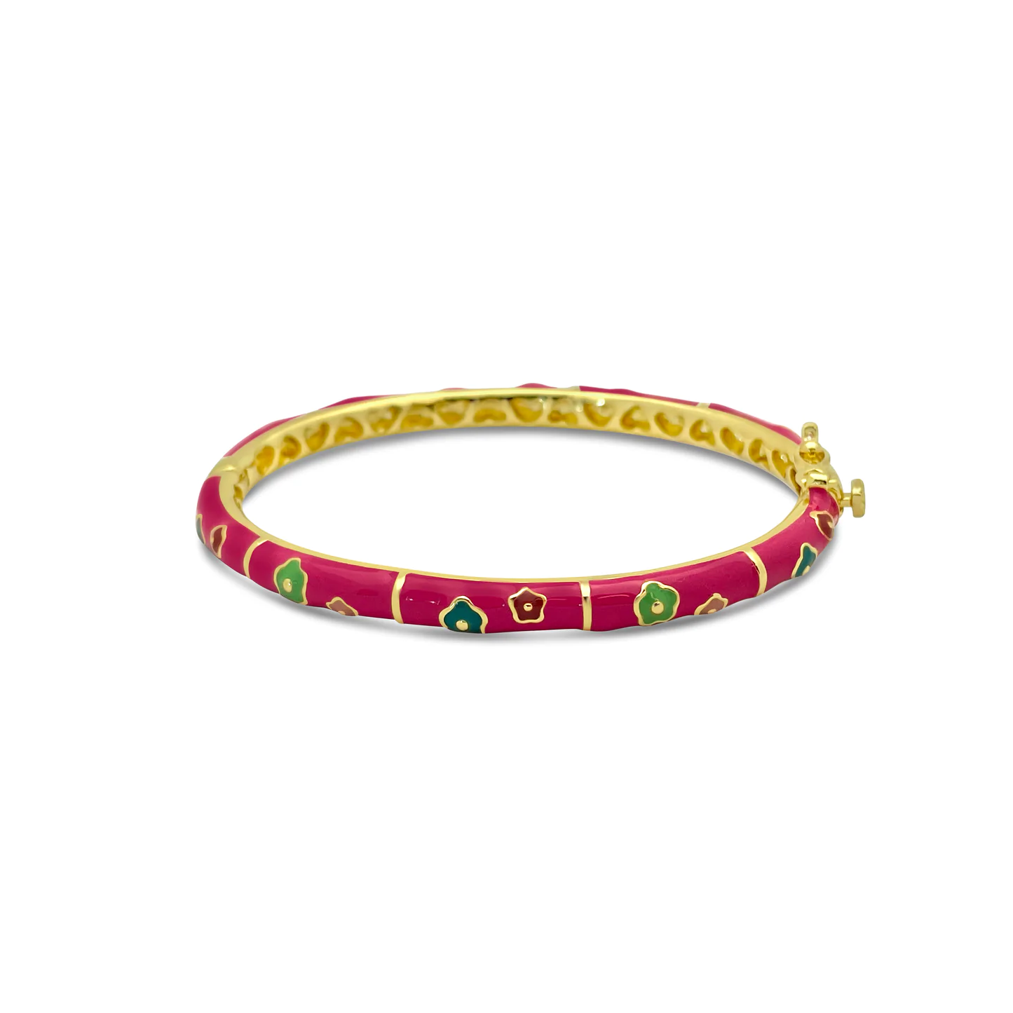 Hot Pink and Colorful flowers Kids Bangle Bracelet