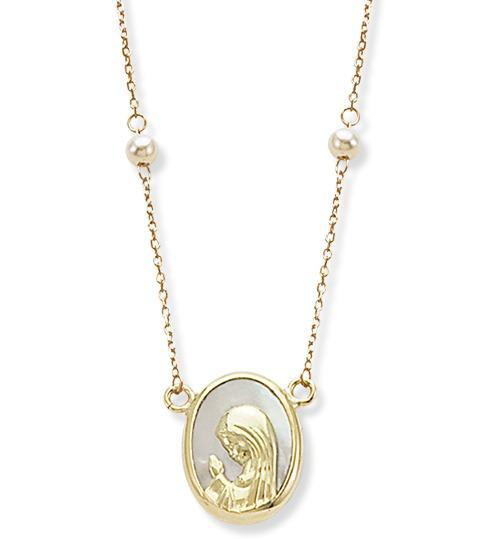 Virgen Nina Oval Mother Pearl and Pearls Necklace