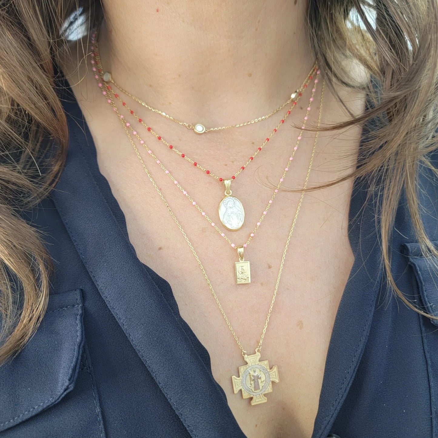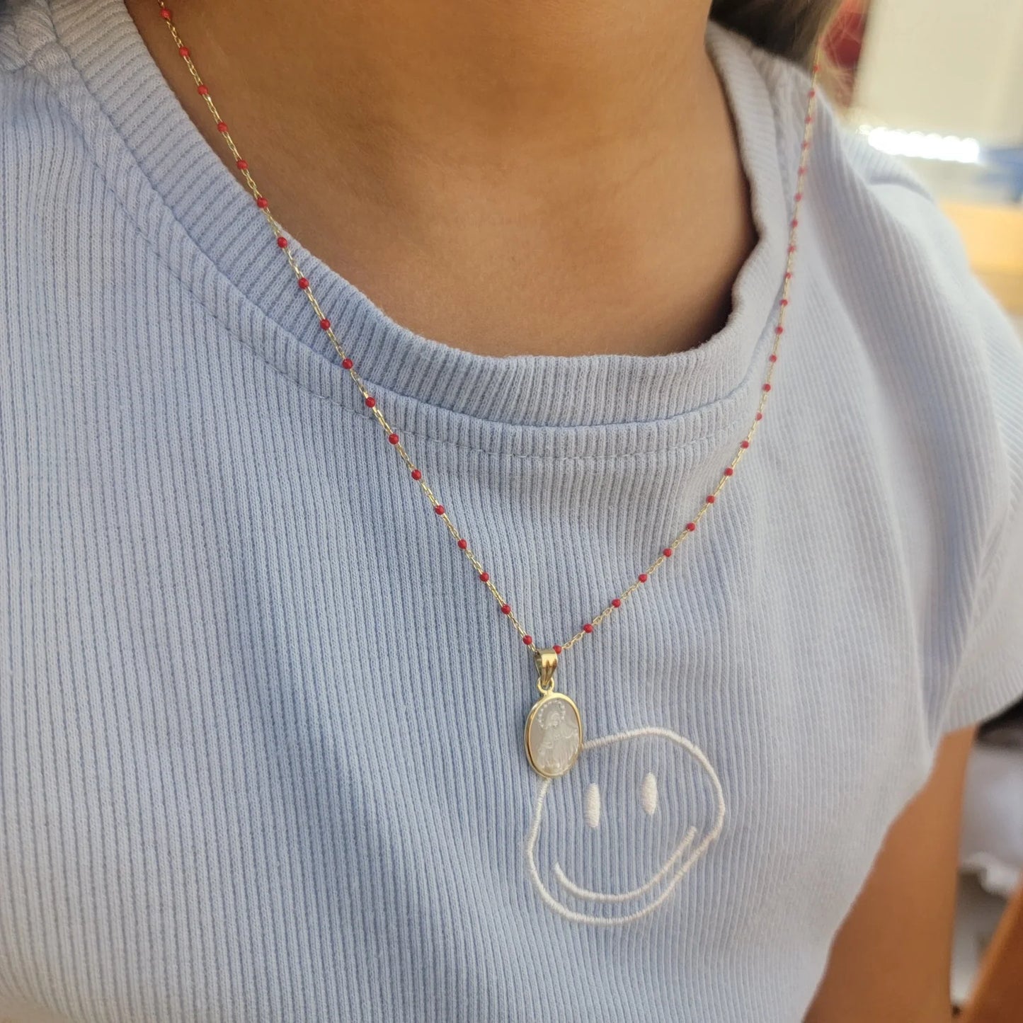 Kury Collection | 14K Yellow Gold Pendant, Virgen Milagrosa on Mother Pearl (10X14MM)