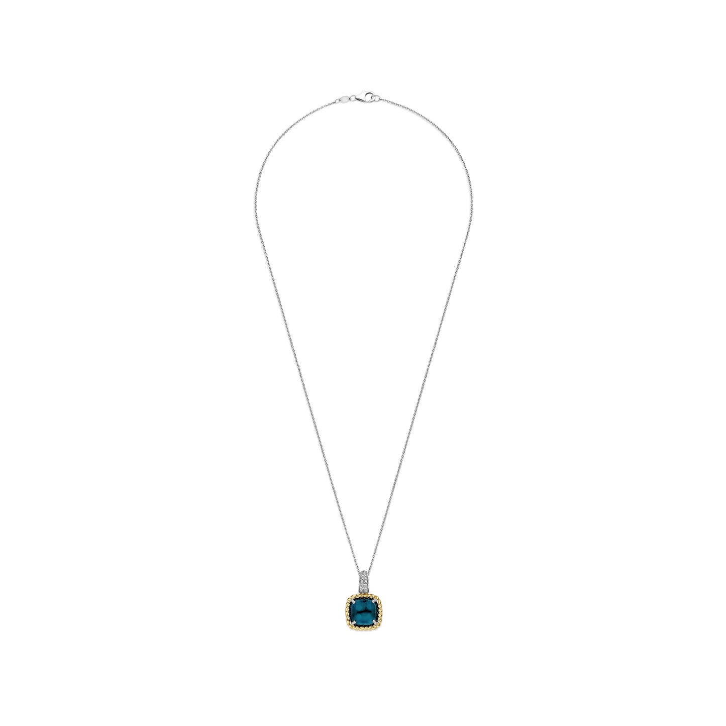 Blue Cushion Twisted Frame Necklace
