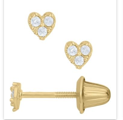 Diamond Heart Kids Stud Earrings 14K