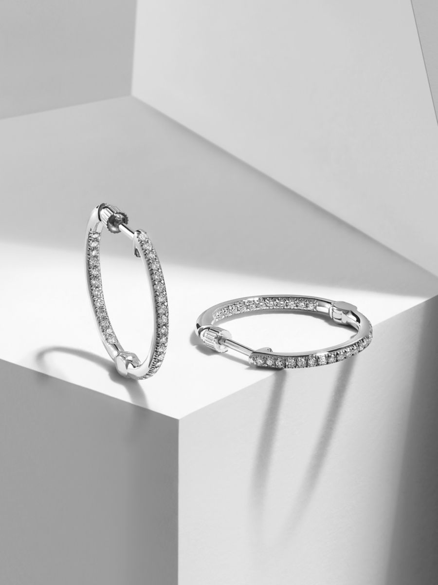 GABRIEL NEW YORK - 14K White Gold Diamond 20mm Hoop Earrings, with .42CT. With patented safety scew back so you never loose and earring again!