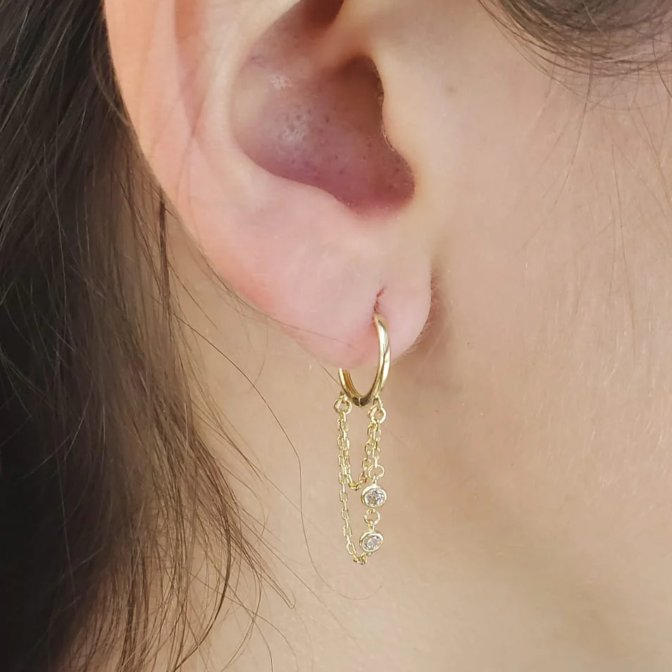 Añadir Double Chain Dangle Huggie Earrings al carrito