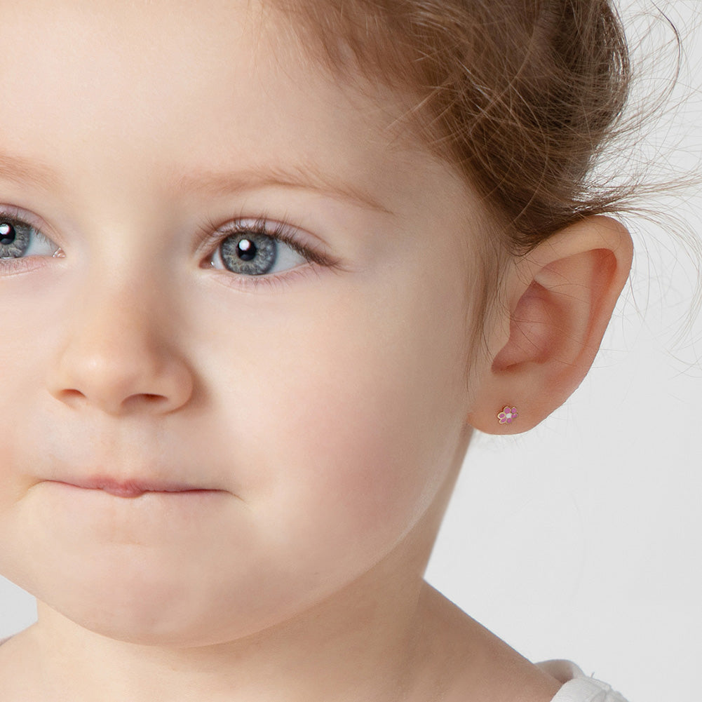 Flower Pink Zirconia Kids Earrings by Kury - Available at SHOPKURY.COM. Free Shipping on orders over $200. Trusted jewelers since 1965, from San Juan, Puerto Rico.
