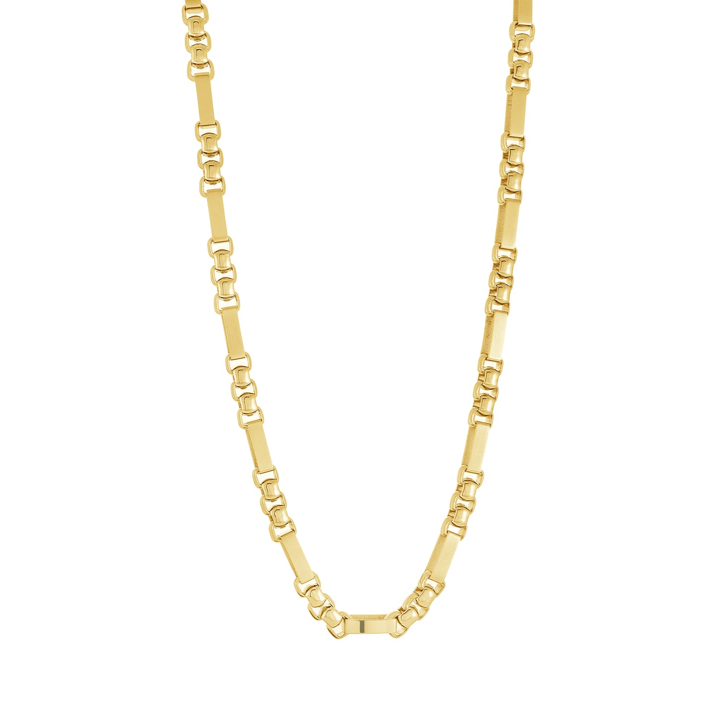 Round Brushed 7MM Links Golden Steel Necklace 24'' - SHOPKURY.COM