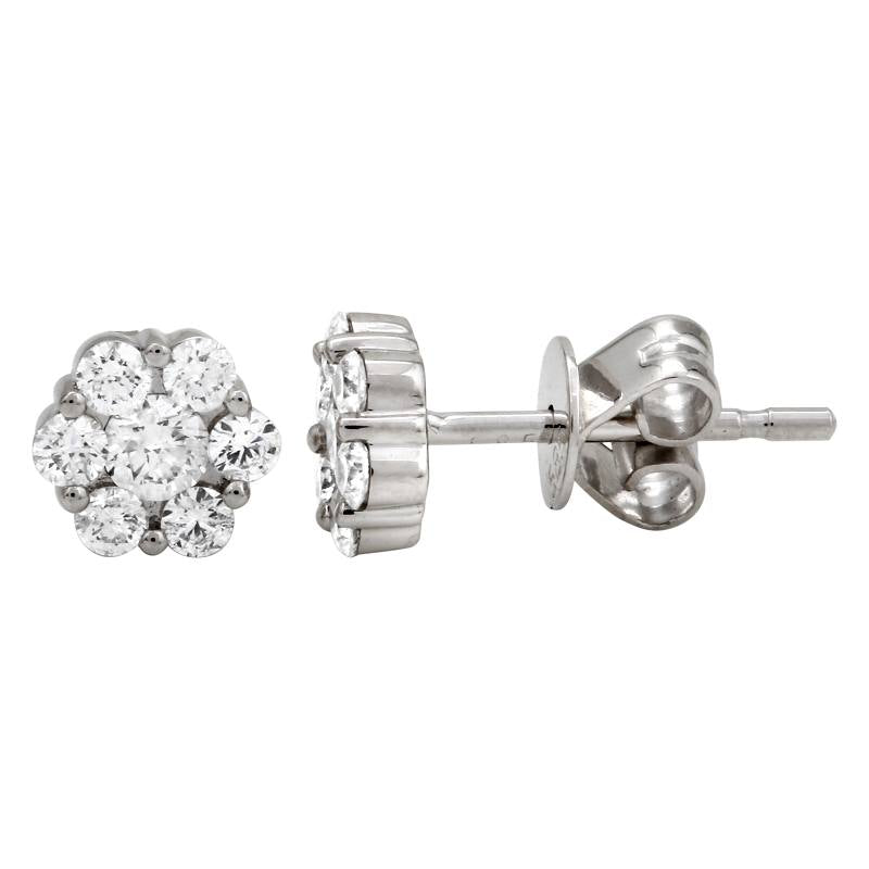 Kury Collection | 14K White gold Flower Stud Diamond Earrings with 14 Round Cut Diamonds totaling .53ct (Clarity I2-I3)(Color H)