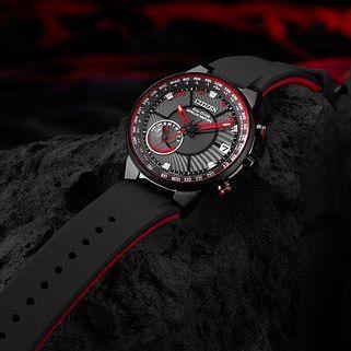 Bolder and brighter. Enhanced technical and architectural design; the new Citizen Satellite Wave GPS Freedom is the leader of the pack with the world's fastest timekeeping signal reception speed from GPS navigation. A sleek black ion-plated stainless steel case, black polyurethane strap, black dial and brillant red accents features satellite GPS timekeeping technology with worldwide reception and time adjustment in 40 time zones. Powered by Eco-Drive technology – powered by light, any light. Never needs a battery. Caliber number F150.