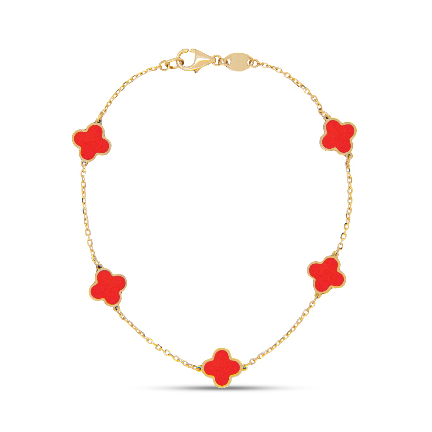 Clover Inlay Red Coral Bracelet