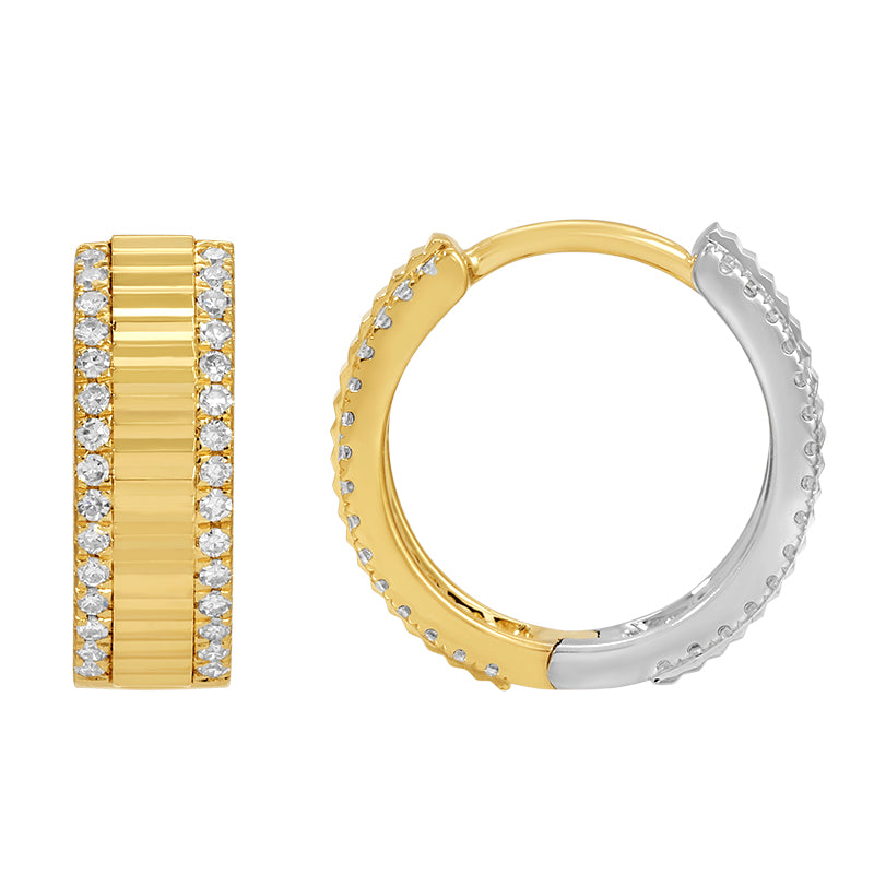 Fluted Reversible Two Tone and Diamonds 12MM Earrings