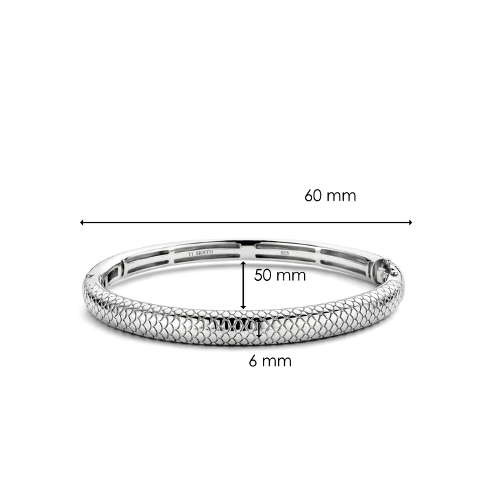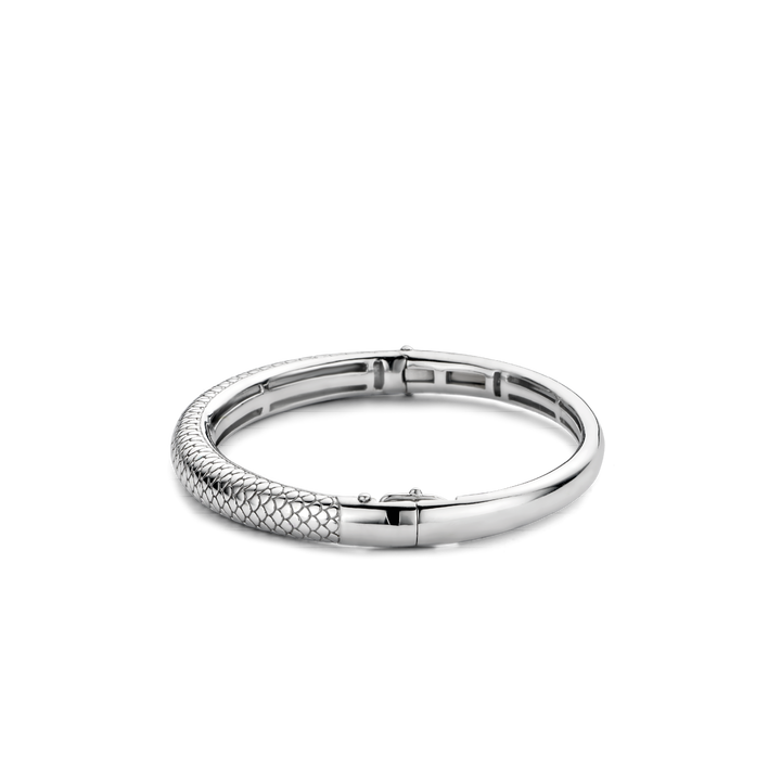Snake Print Wide Silver Bangle Bracelet